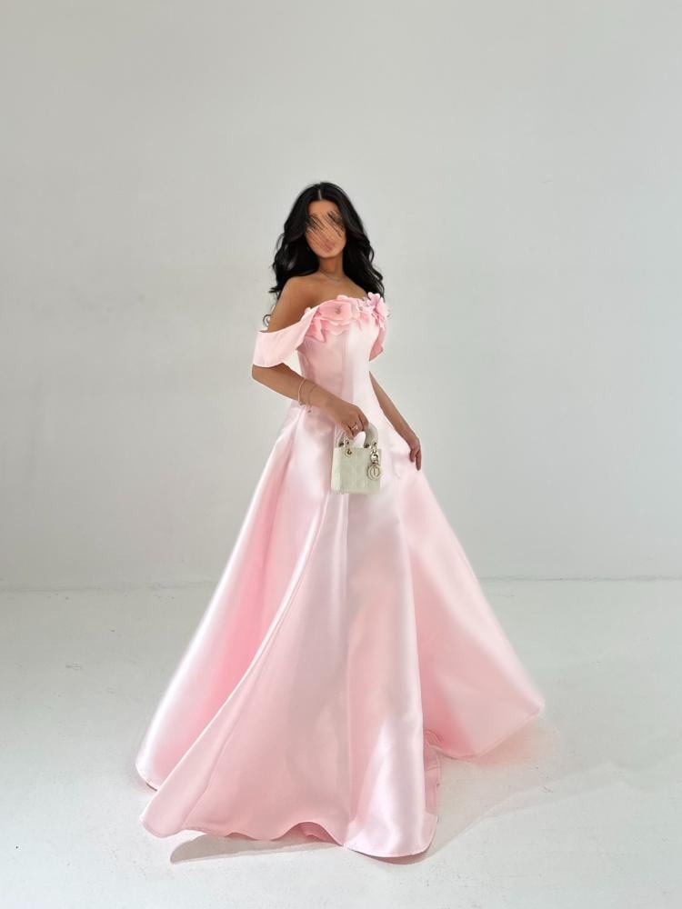 مواصفات فستان تفته طويل وردي