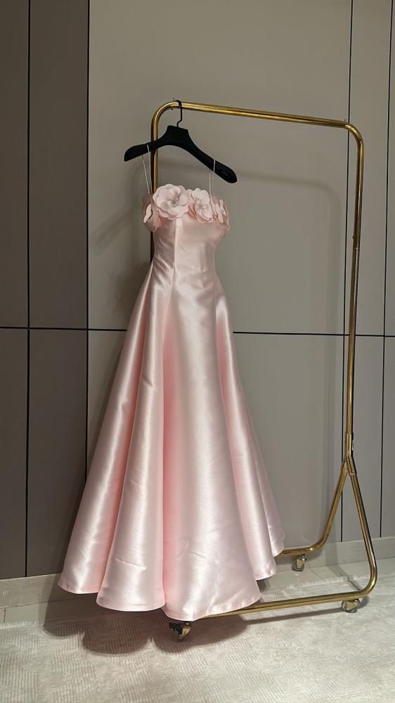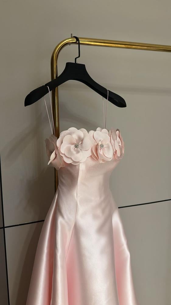 • فستان تفته طويل وردي يطلعكِ كشخة أنيقة بدون ما تحسين إنك متكلفة.